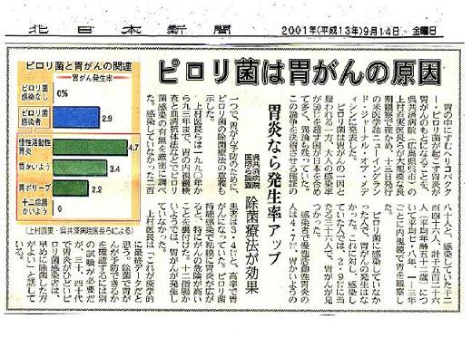 - 201年9月に北大の浅香正博特任教授がピロリ菌の研究と「胃がん撲滅計画」としてすべてのピロリ菌感染胃炎に対する除菌療法を普及させた功績でもって最高権威のマーシャル・ワレン賞を受賞されました。(